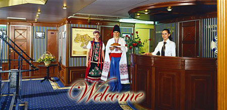 The elegant Kiev Restaurant, with picture windows on three sides, offers meals adjusted to western taste as well as Russian and Ukranian cuisine. Tastefully furnished lounges and bars offer a selection of reasonably priced wines, liquor, beer, champagne, and of course, a selection of Russian and Ukrainian vodkas. Also on board the ship is a boutique with souvenirs and the art of the cities and villages seen enroute, a music salon, sauna and beauty salon.